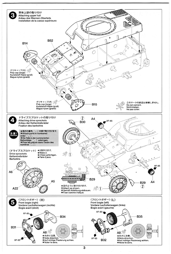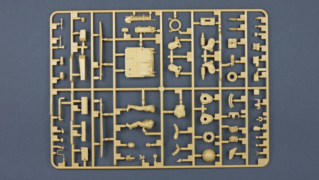 The kit is pure Tamiya – perfect sprue trees and immense detail in the parts. A clearly-illustrated instruction sheet – with writing as well as good diagrams. No Czech assumption here – Tamiya want you to succeed with this kit, and they will help as much as they can. There is also a good colour call-out sheet with two options and clear illustration.