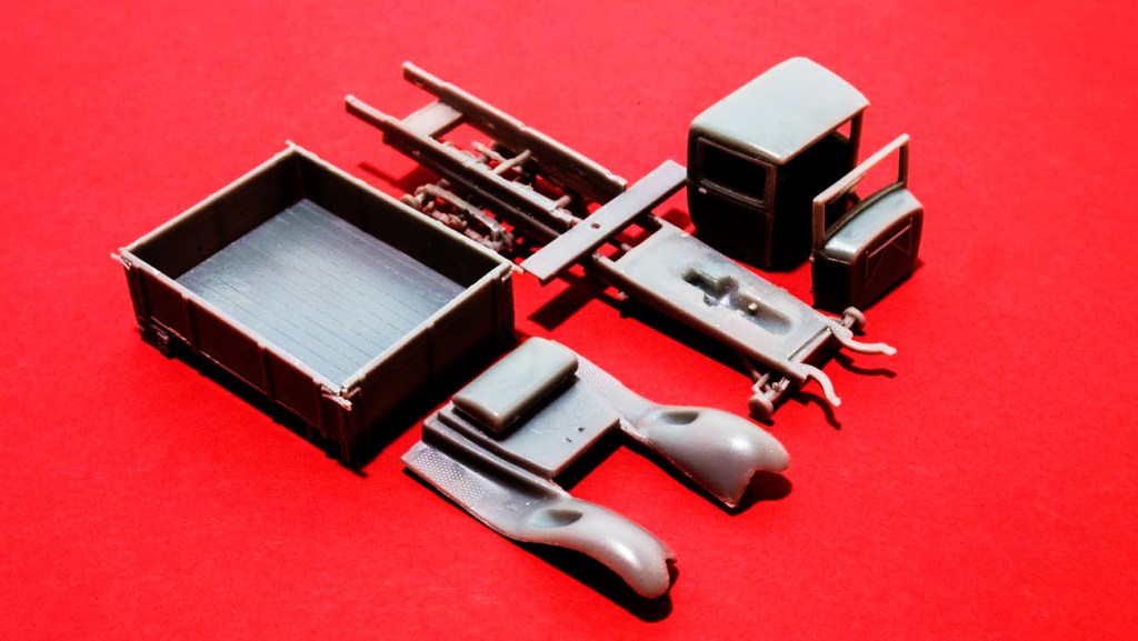 Then I remembered a stash item – a Petlyakov model by Amodel that had a Soviet truck as part of the kit. The whole thing was very cheap from Metro Hobbies because I suspect no-one cares about it – but I could take the truck out of the kit and build it up. Glory be – it was a starter truck!