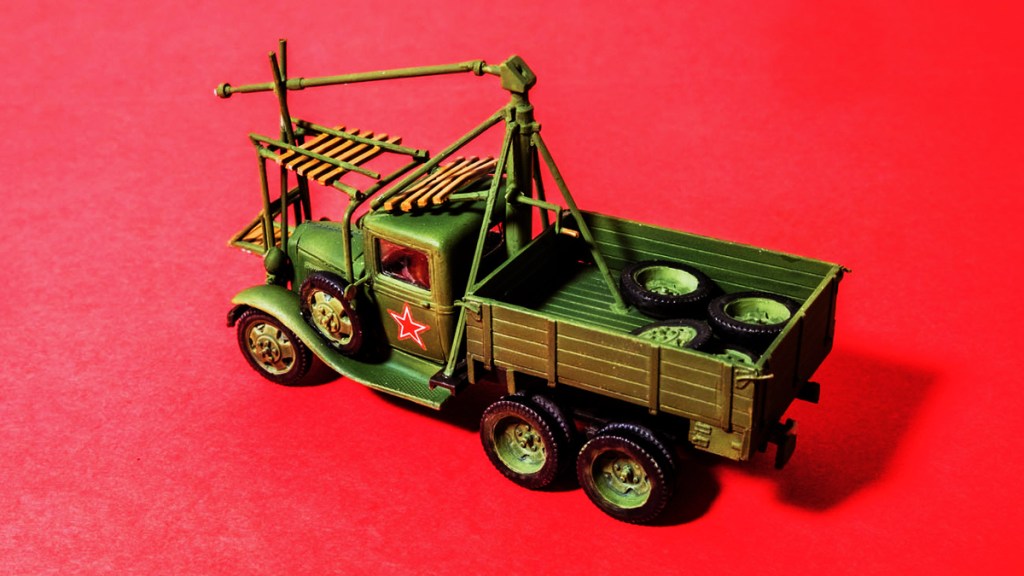 The only other thing to puzzle out was the platform on the AS truck – and this was simple; the platform at the front went up and down to allow a crewman to be up there and attach the Huck shaft to the hook. It could be starting a fighter engine close to the ground, or a bomber engine up higher. Presumably he climbed off it before the driver engaged the clutch and revved the truck’s engine to turn over that of the plane. When the plane fired, the truck backed away from it.
