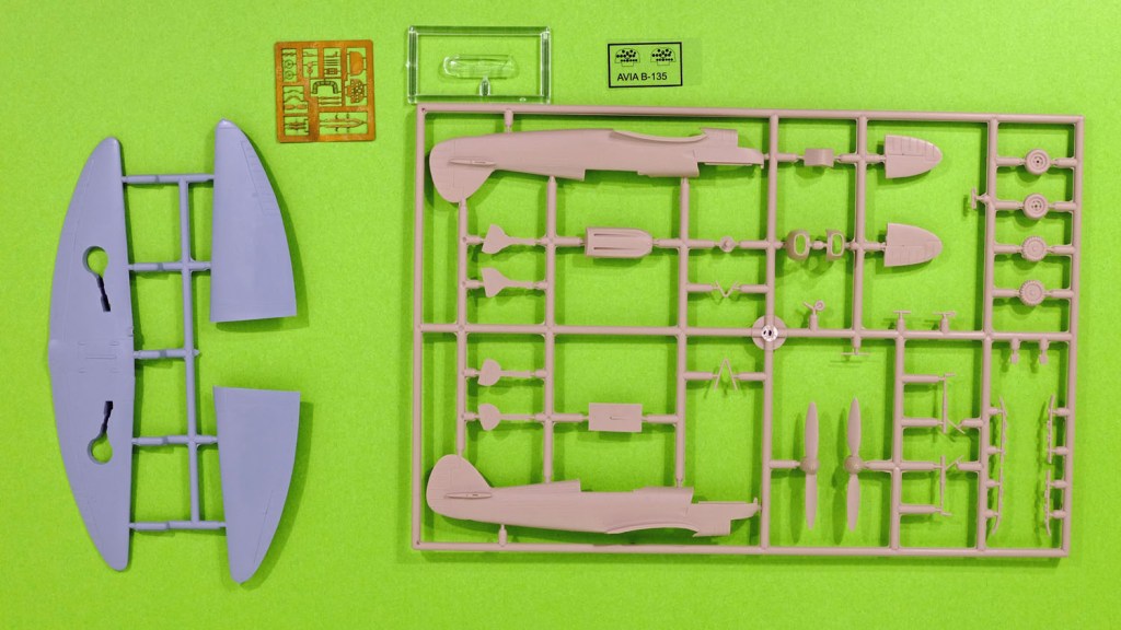Two props and two sets of main tyres corresponding to two different air forces. Also alternative air cooler scoops. It is evidence that the Czech firm that moulds the kit takes a pride in the products of their own country – always a good buying combination when you find it.