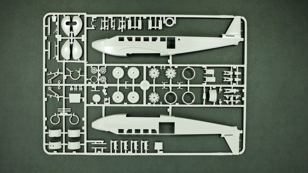 The sprue trees are perfect and the clear plastic very clean. It’s an older kit, but wasn’t started. The interior has a military as well as civilian setup and I will pay dearly in the time it takes to do the seats – but I am excused machine gun mounts and skinny barrels ready to break.