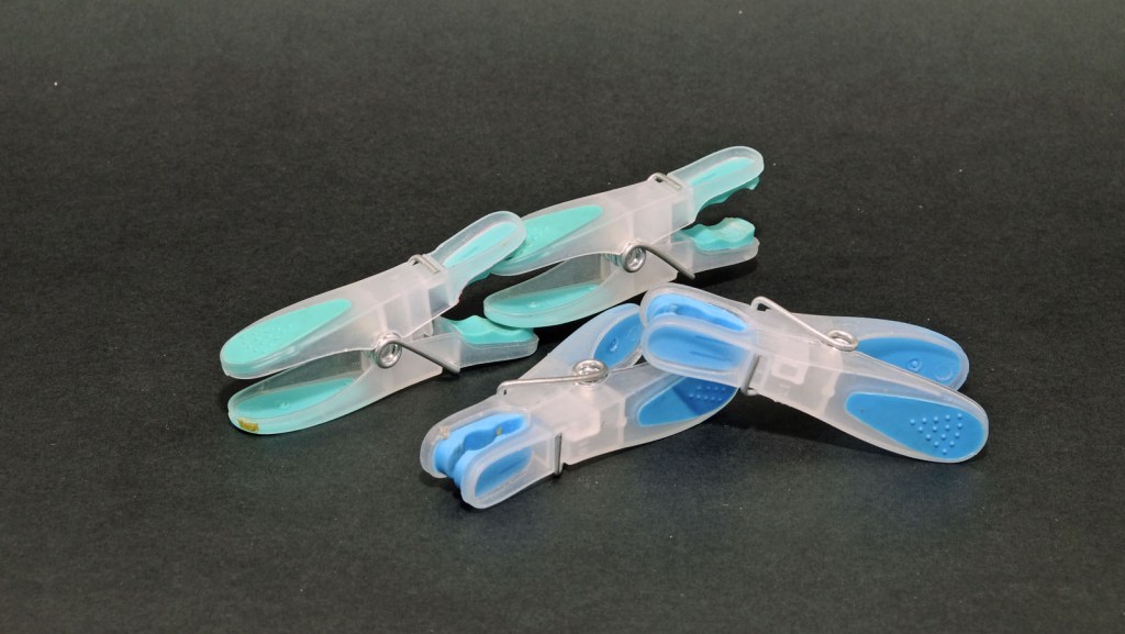 - Form a small roll of masking tape – sticky side out – and use it to give some purchase to the clothes-peg. The rubber end of the peg will grip to a certain extent, but you can always increase that.