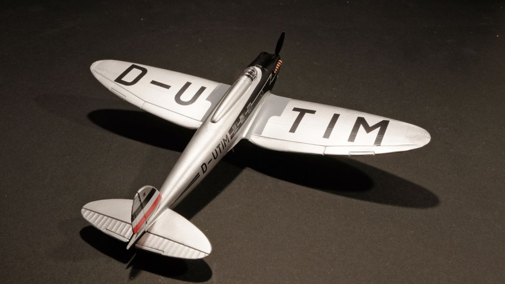 But gradually it came together and Spue Goo smoothed the way. I was able to use Mr. Color Super Duralumium for the finish and conquer most of the surfaces. The side painting to allow the flash to show through the black decal was a bugger to do – a better alternative would have been to just make the decal as silver as possible and leave it at that. But bless the printers – the complex sides went on neatly.
