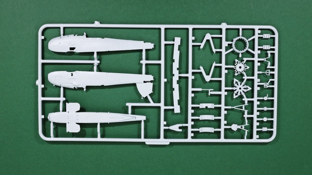 There should be no real difference between this and the previous one as far as wing structure and tail go – and indeed I noticed with the last kit that they had left the landing gear legs and wheels on the sprue trees anyway.