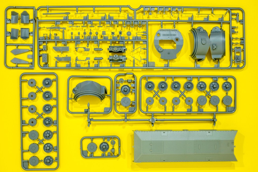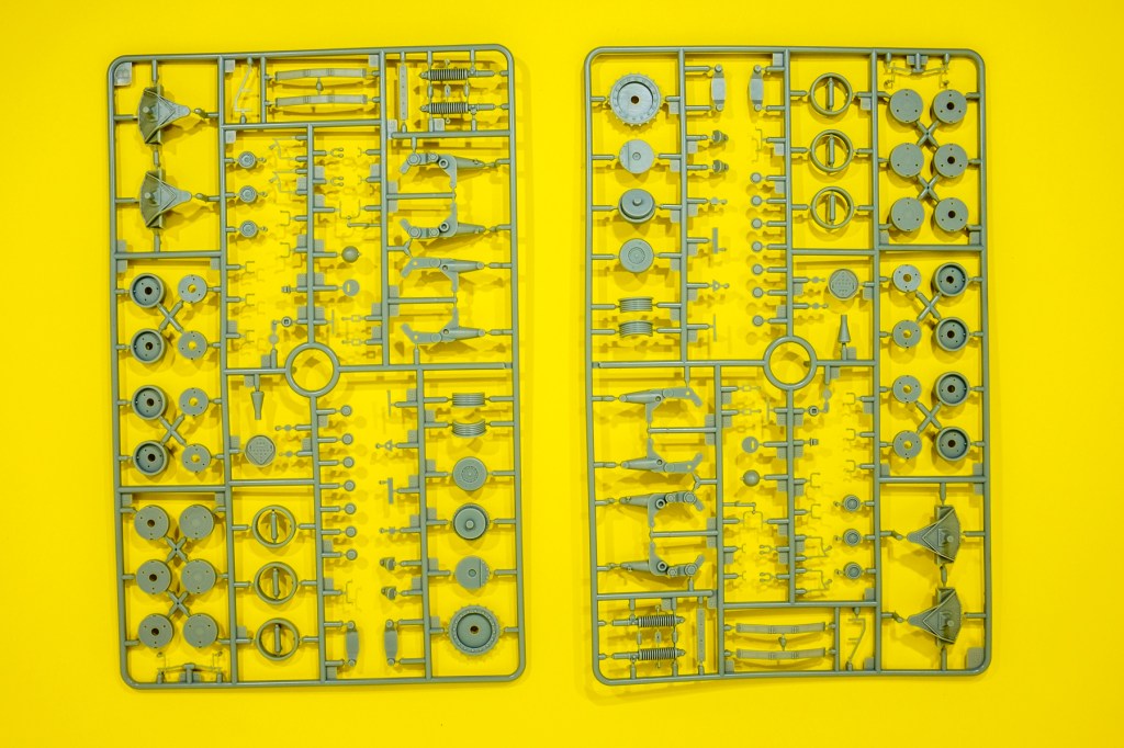 There are a number of repeated sprue trees here to cater for the suspension and wheels. several options are moulded for the turret and mantlet. There is a driver’s compartment that can be seen if one leaves the hatches open, though the turret is better closed.