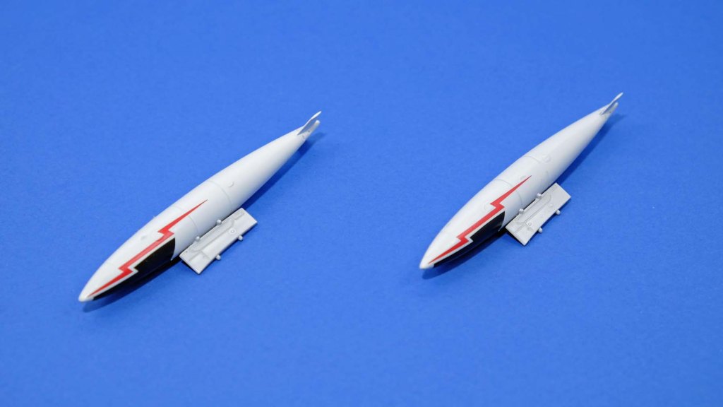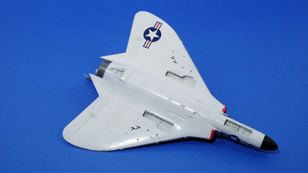 So the decorated tails of the US Navy and US Marines are fine. And the white underside with Light Gull Grey topsides are also fine – they meet at a sharp line and do not interfere with each other. If I lay down an undercoat of matt varnish the final lacquers will be very even.