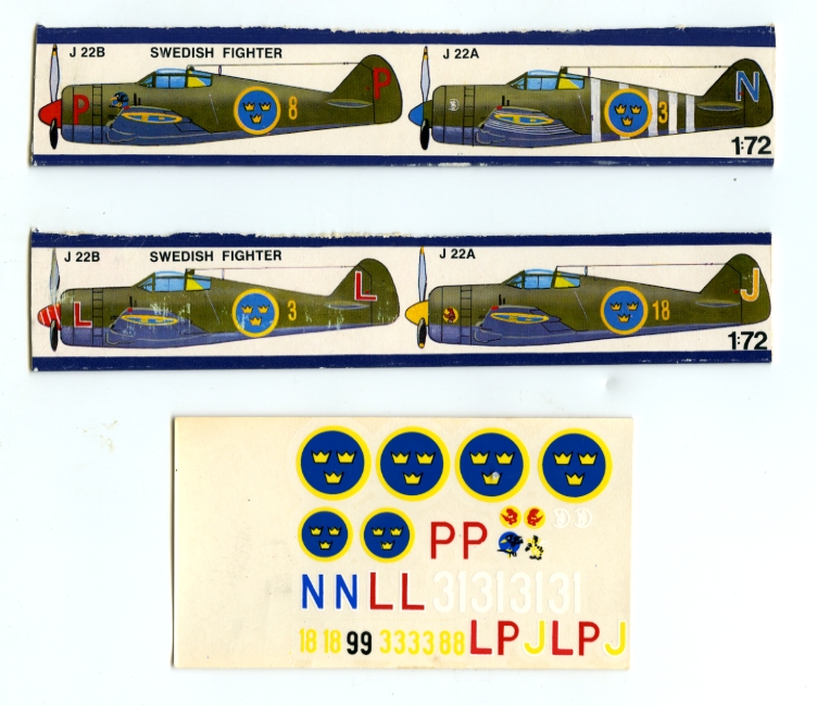 The Swedish air force had a strong corporate feeling in their paint schemes and unit markings. I hope the decals will do it justice, though they seem a little rudimentary. If the roundels look bad there are better Airfix ones in the spares envelopes.