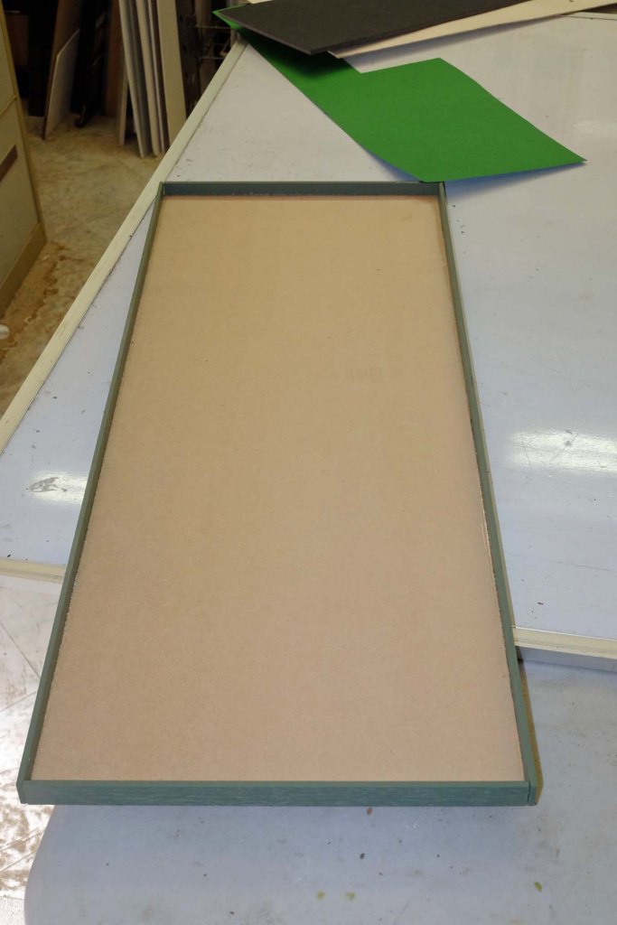 Pre-made display tray sized to fit the library shelf. Piece of black foam board. Piece of green paper. Piece of clear blue cellophane ( The only purchase – Officeworks. ).