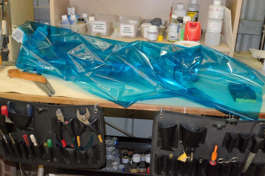 I needed a harbour with water – dry water – to display my float planes. No good just posing them on a glass shelf like dried cod – they needed to look like they were in their natural element.