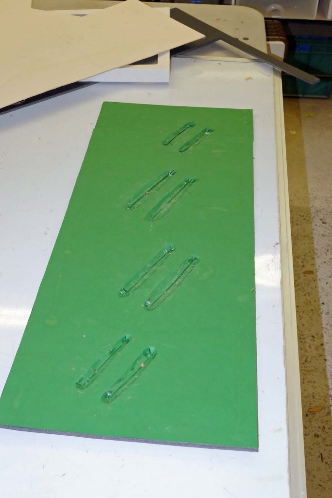 Laid out the float planes in line facing the wind. Traced around their floats, and then cut out the float prints.