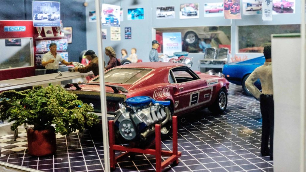 The models are also likely to be more colourful and clean than the average plastic model tank or airplane. For the military displays I might turn my camera to Velvia film simulation, but for this one it is reined back to Pro Neg. Even then I do pass the 70-or so files through RAW processing to control the saturation. Model car builders do not fight over demi-shades of grey or olive drab when they go to their airbrush booths.