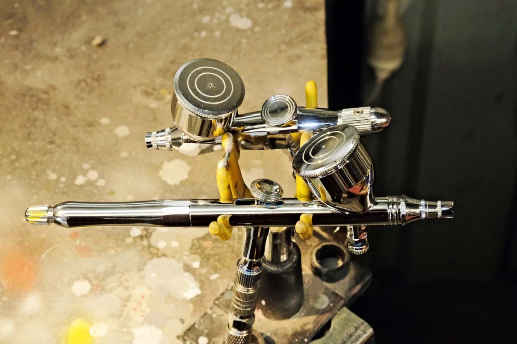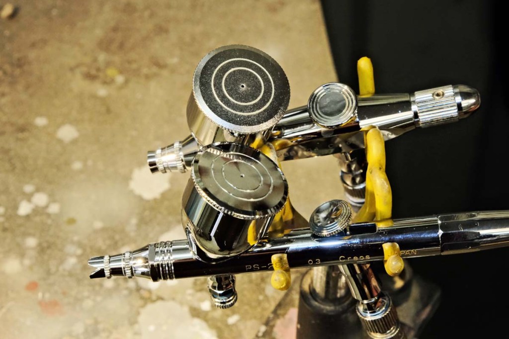 Over a period of years I have been painting with multiple airbrushes – my compressor unit has two output hoses. Starting with cheap kit guns and trigger actions, I have finally settled on two Mr. Hobby Procom Boy units. One is single action – on double. They are wonderful daily driver airbrushes.