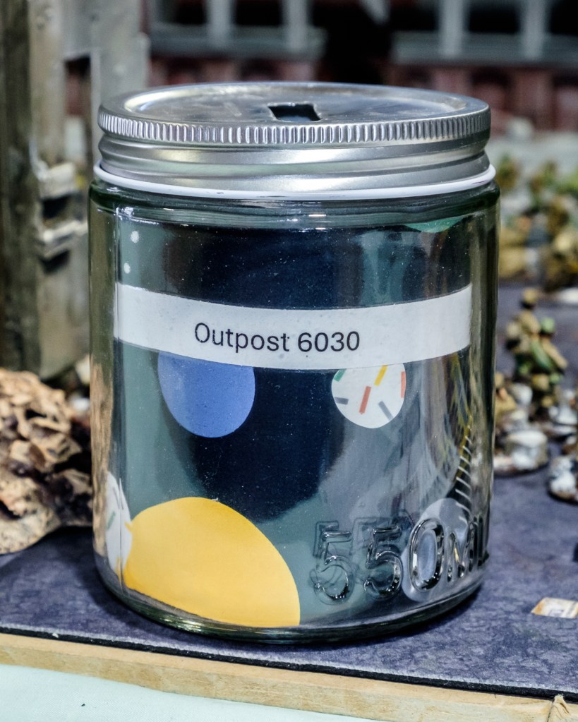 That’s the voting jar. Each visitor got a button to put into the jar to vote for their favourite display. These guys got enough to become Pearly Kings!