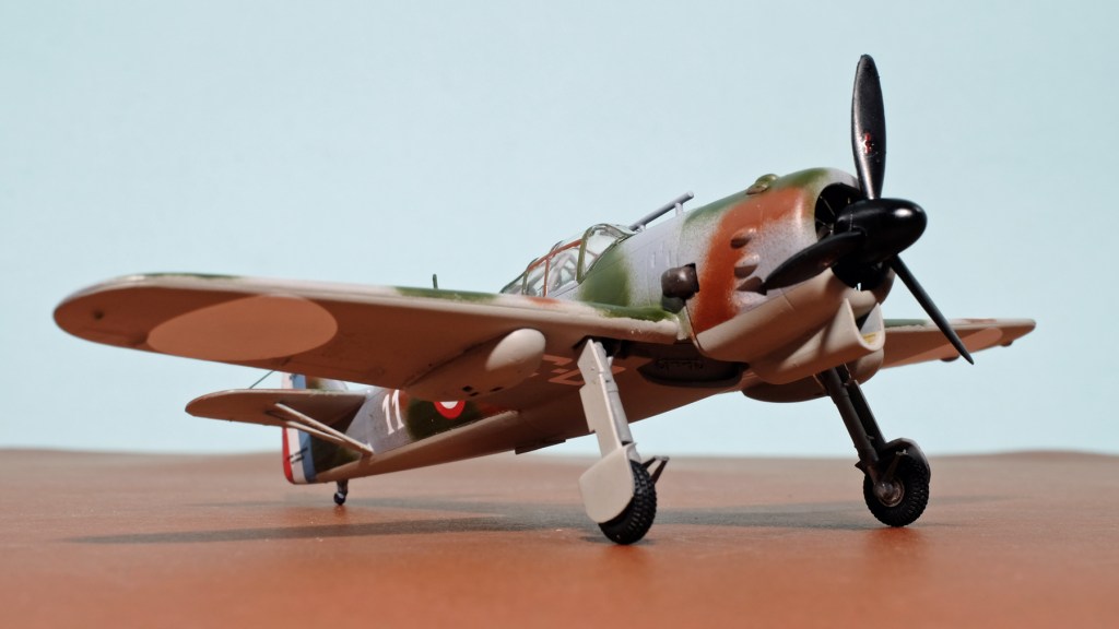 Or rather, it is caught in between one set of colours and another. The real planes were delivered to the French air force from the Rotterdam plant of Koolhoven just prior to war with the diplomatic ruse of painting over the French roundels and tail markings with white paint.