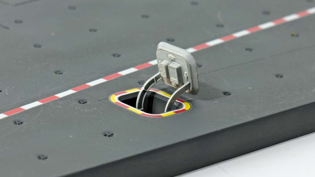 As did the hatch for the escape hole. There are two catapult shoes in the kit so I’ll be making them both up – one for spares. Then it is off to the collection shelves to see which USN jets will look good on the cat. I think I have three at this stage of the game, but this deck will encourage me to make a lot more.