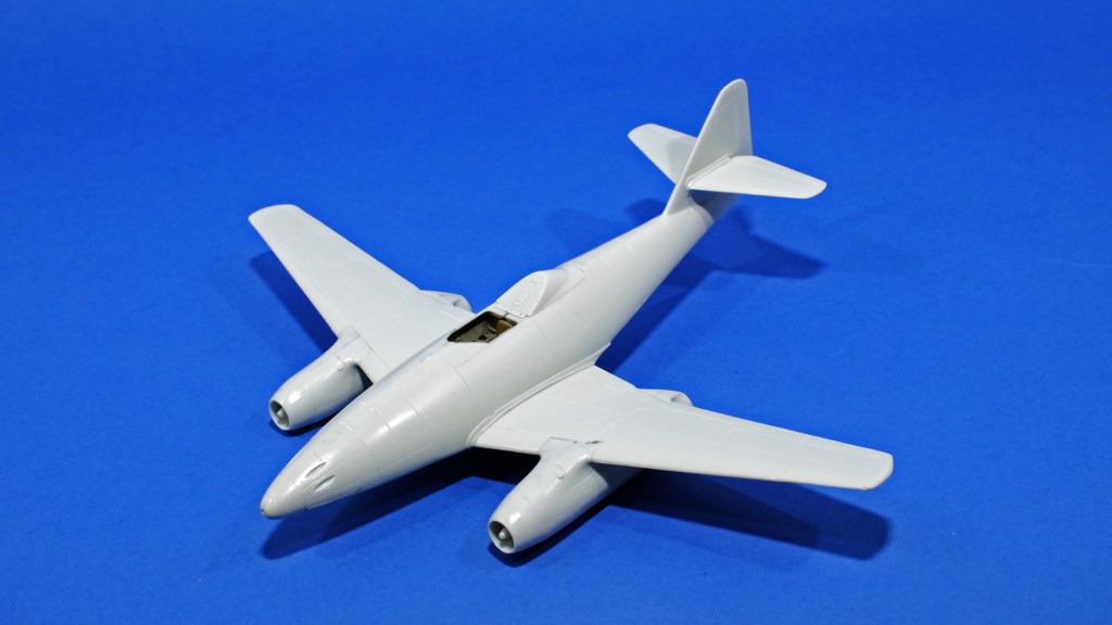 I expect it will be ready for undercoating by tomorrow – already the wheels and landing gear are painted on their sprue trees. One forgets how simple early jets were. Almost a Meteoric build…