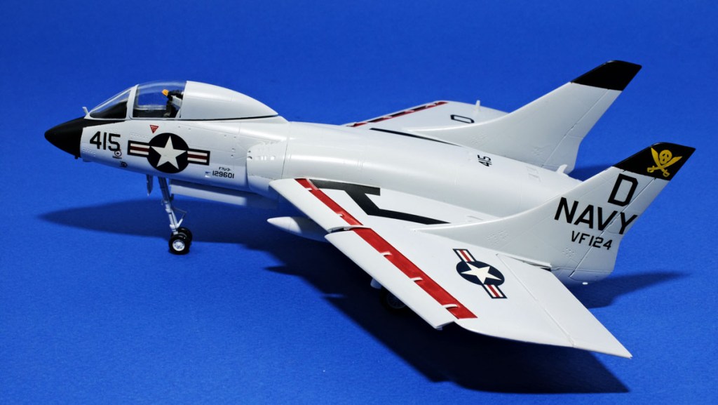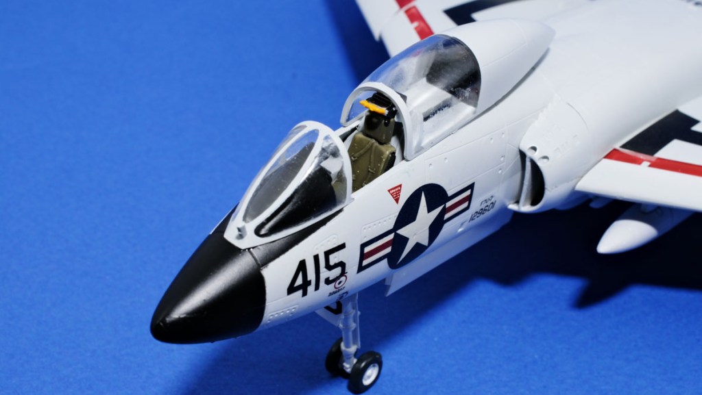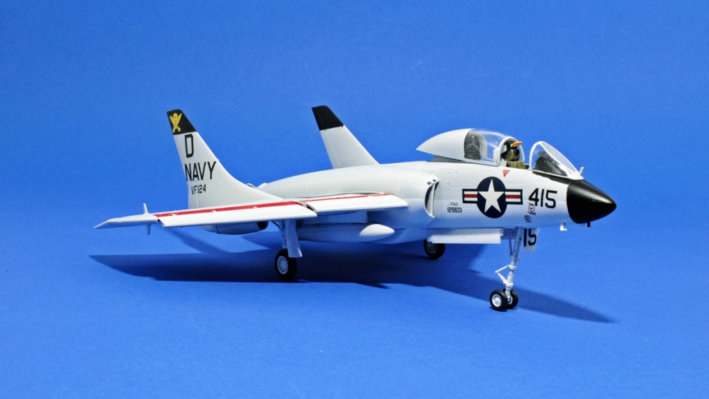 This Fujimi offering in 1:72 was a delightful build – taken at a leisurely pace. The operating canopy is fun, but hardly accurate. ther rest of the structure is excellent, and this aircraft will feature on the new Italeri US carrier deck diorama. If I can find a pilot I’ll pop him in there. If I can find a ” mule ” deck tractor, I’ll tow it around.