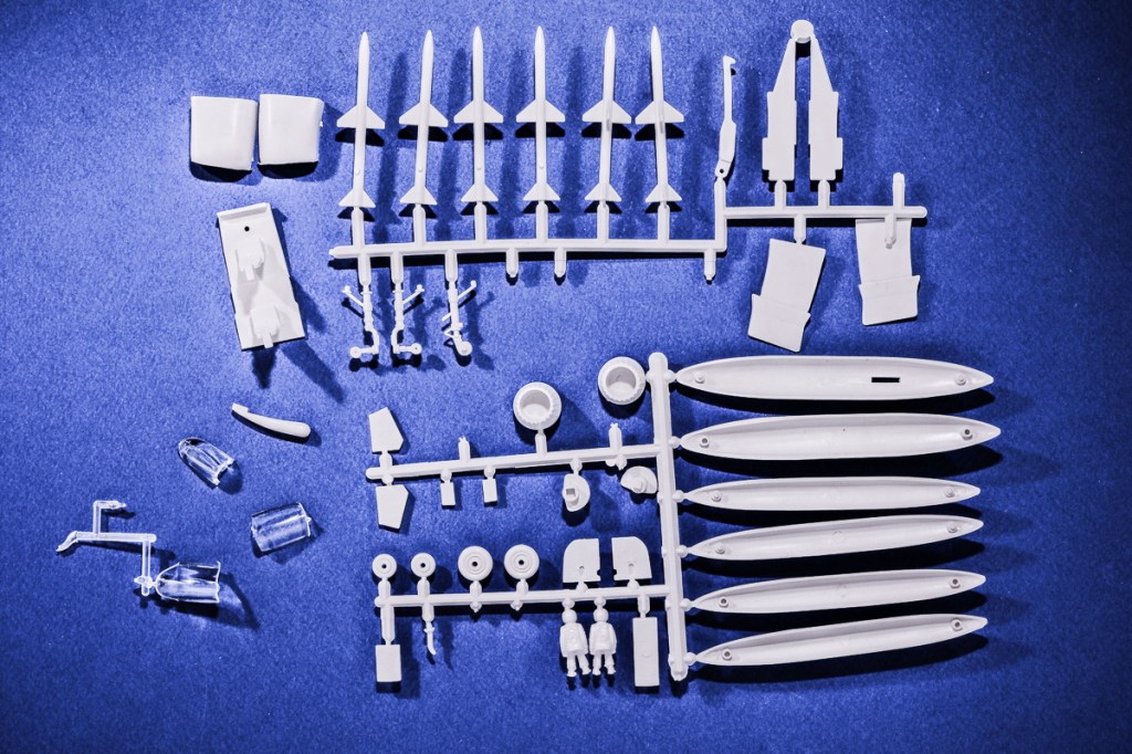 The white moulding is actually a help, as it will have a white underside anyway. There are a few ejector pin marks, but little flash and no sink holes.