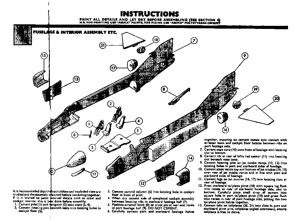 The instructions are monochrome print, of course, and are particularly plodding when describing where to paint the different colours. These may not have been all that accurate for the actual aircraft of the period but the point of this build is that they are accurate for this kit. I shall be substituting Mr Color lacquers for Humbrol or Airfix enamels, but should be able to follow the prompts anyway.