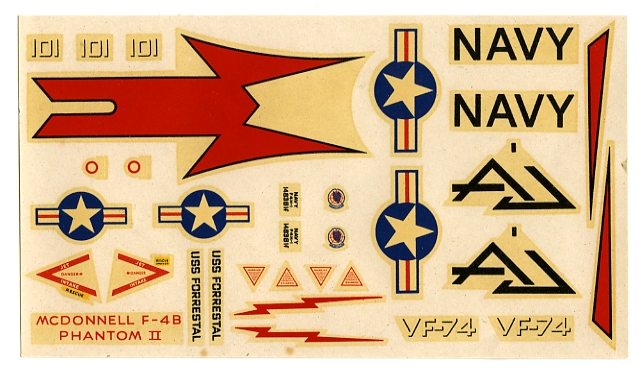The decal sheet is intact, but yellowed. It will be taped inside the lounge room window for a week to see if there is going to be improvement. I suspect there are a lot of after-market sets for Phantoms, but that would spoil the purpose of the build.