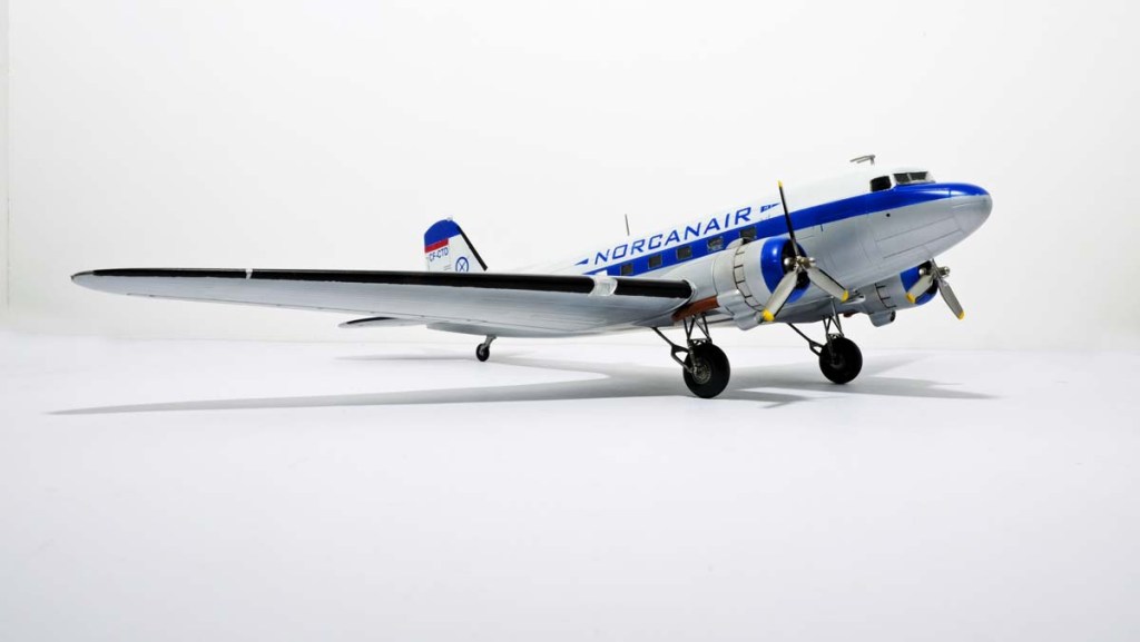 I suspect the paint reacted with the undercoat and somewhat frosted itself – reacting after spraying to give a clouded appearance. I have to accept that a feeder airline line Noranair flying to the Northwest Territories would not really have a pristine appearance, anyway.