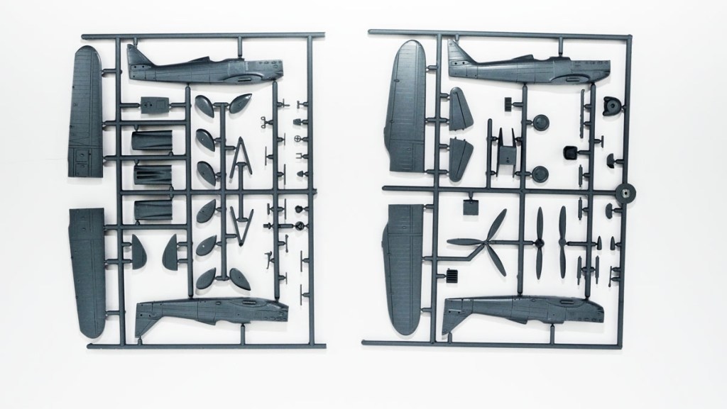 There are three variants in the decal sheet – in my case I will choose the Aeronavale version in a light overall grey. The sprue trees provide several options of propeller and guns.