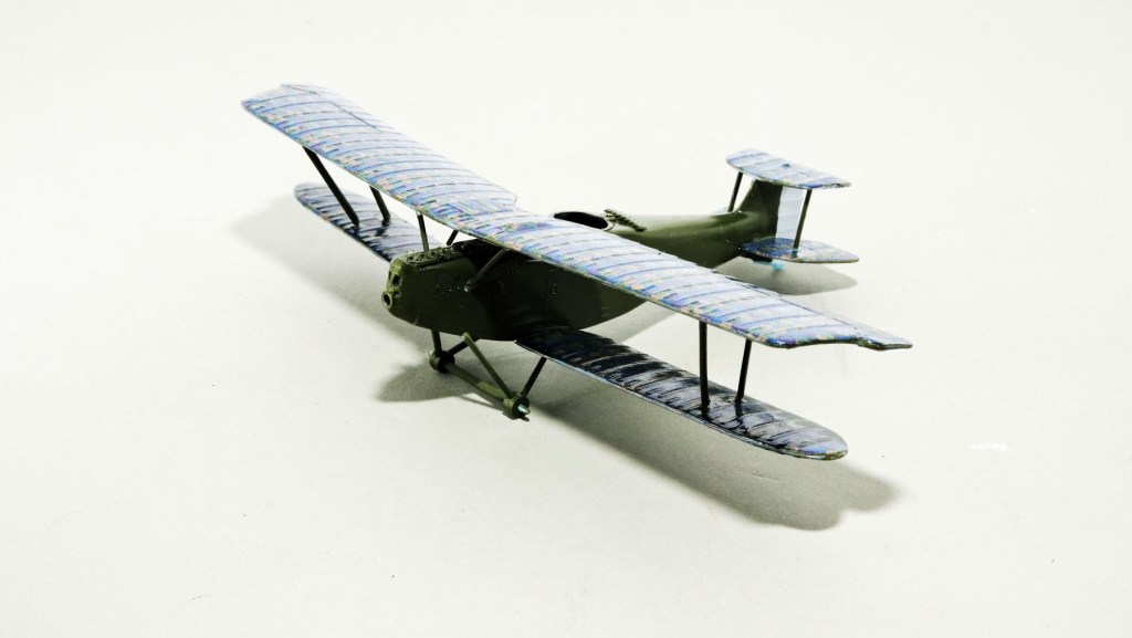 Then on to the acid test – the attachment of the wings and spars. Most times you choose either main spars or cabanes to cement first and let these firm up before slotting in the others. I chose the main first with standard cement and after this was set I squeezed the wing down until the cabanes could be made to grab with superglue and a kicker.