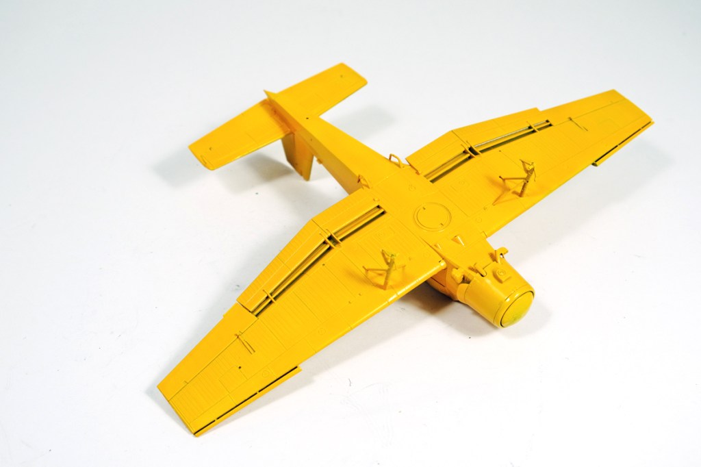 Fortunately for aircraft builders with fine panel lines, this thin coverage doesn’t fill them quite as much as a darker colour – you see natural outlines as the paint dries. This is quite attractive.
