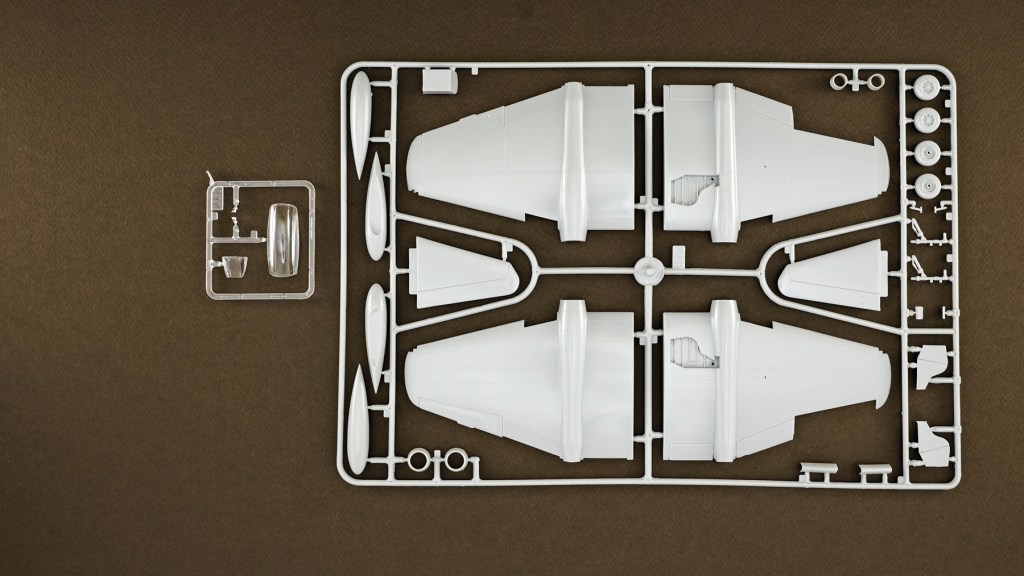 There is either a closed bomb bay or a full one with the doors rotated open – and nine 500lb. bombs on display. This is by far the most attractive option and so simple to complete. There are tip tanks that slide onto the wings perfectly.