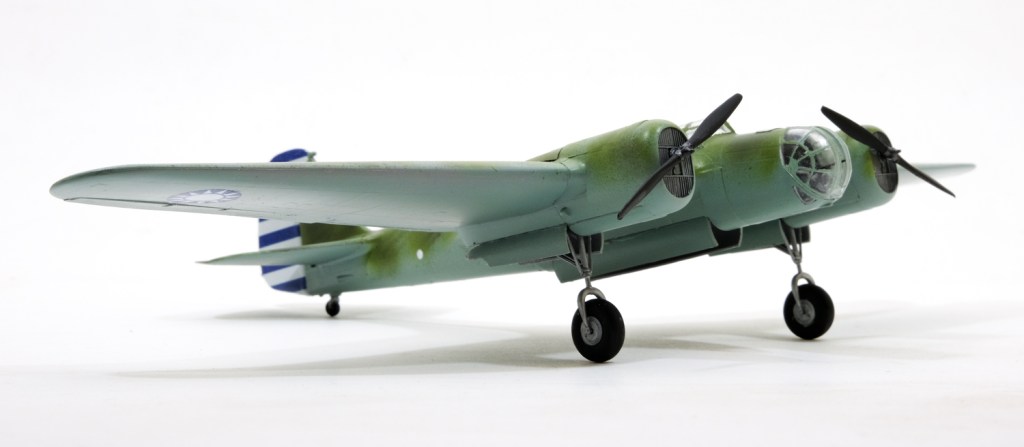 The camouflage on the SB 2 is a new technique – a basic coat of light blue over-sprayed with two shades of green through masks. The masks were old PE frets that have been saved from previous build. I could not be more pleased.