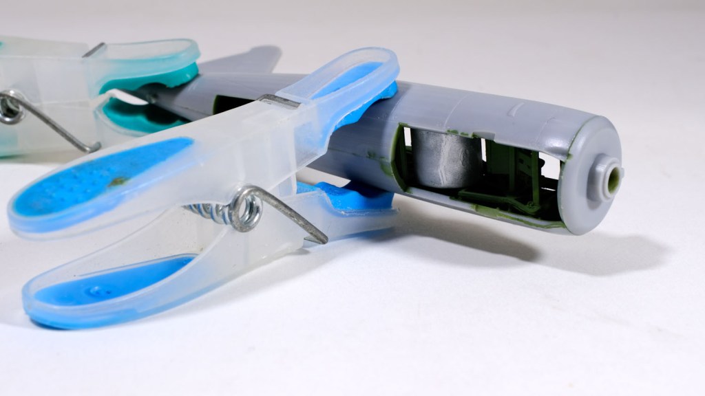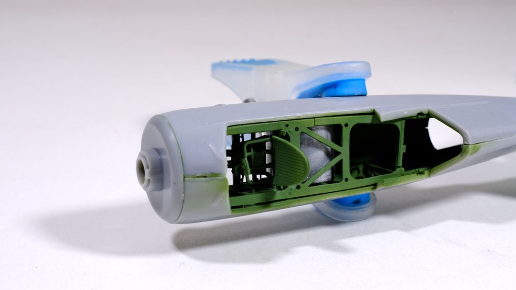 The fact that the greenhouse is so large on this design is a wonderful hazard – you daren’t leave out any of the major cockpit structures lest you make the thing look bare. The seat is spindly, and so are the structures around it – however the cage does fit relatively well inside the fuselage mouldings and only a little fettling shrinks the thing to allow closure.