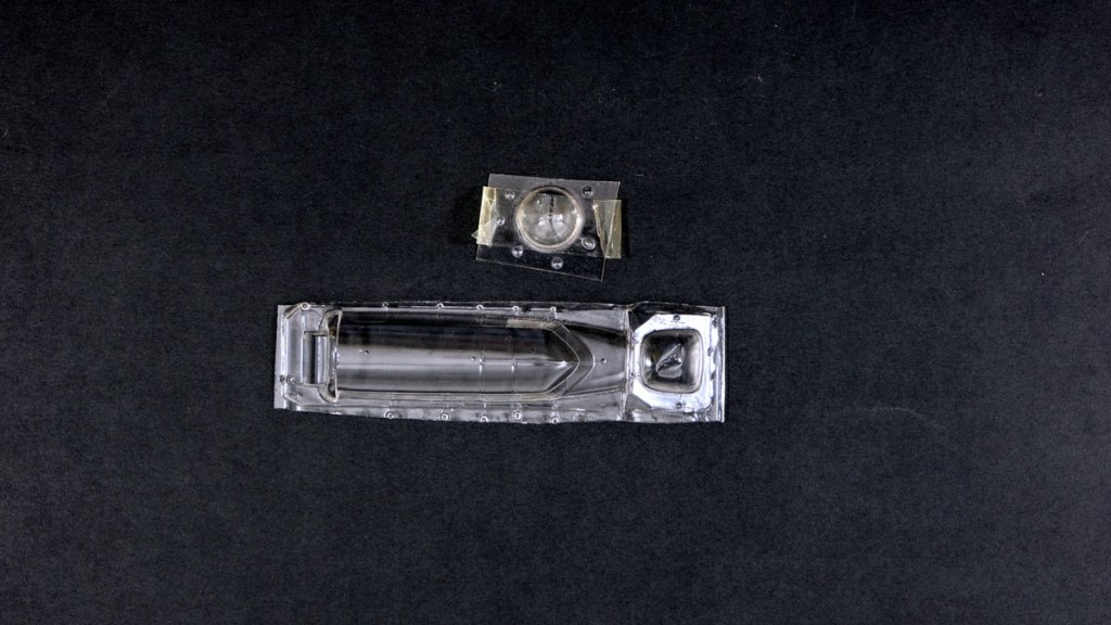 The vac-form canopy and nose incorporate a unique design decision that overlays the styrene with the clear part. Whether this will work is a moot point.