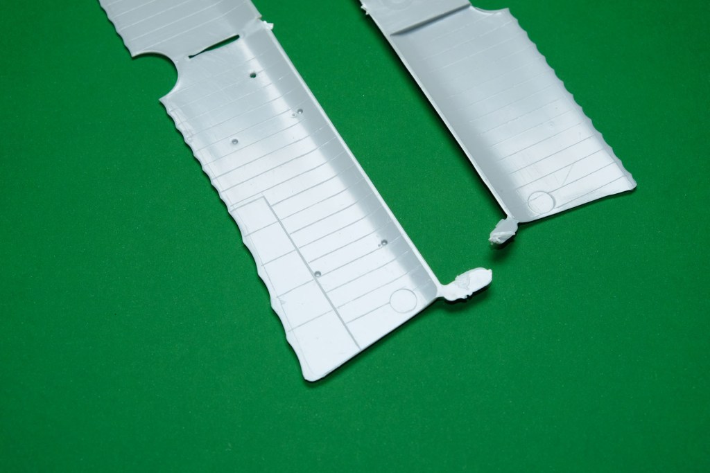 A reasonable moulding, with few ejector pin marks and little sinkage. The wings are surprising – at first you think they are a mistake. The underside curves almost follow the contour of the upper surface. This is to represent the extremely thin cross-section Ansaldo designed. The ribs are prominent but with the Spanish colouring they will not be seen too much.