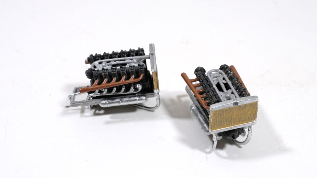 These two donks have been the most complex engines I’ve yet seen in a 1:72 kit. The fuel pipes and cooling assembly alone should have frightened me away, but I was too foolish to run.