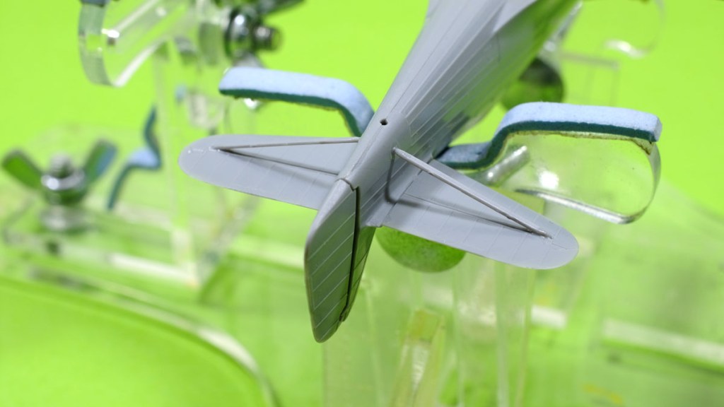And I am delighted to report that the tail assembly fit perfectly – no brass pins needed for the horizontal stabilisers and the supports underneath actually fit in the depressions they were intended for.