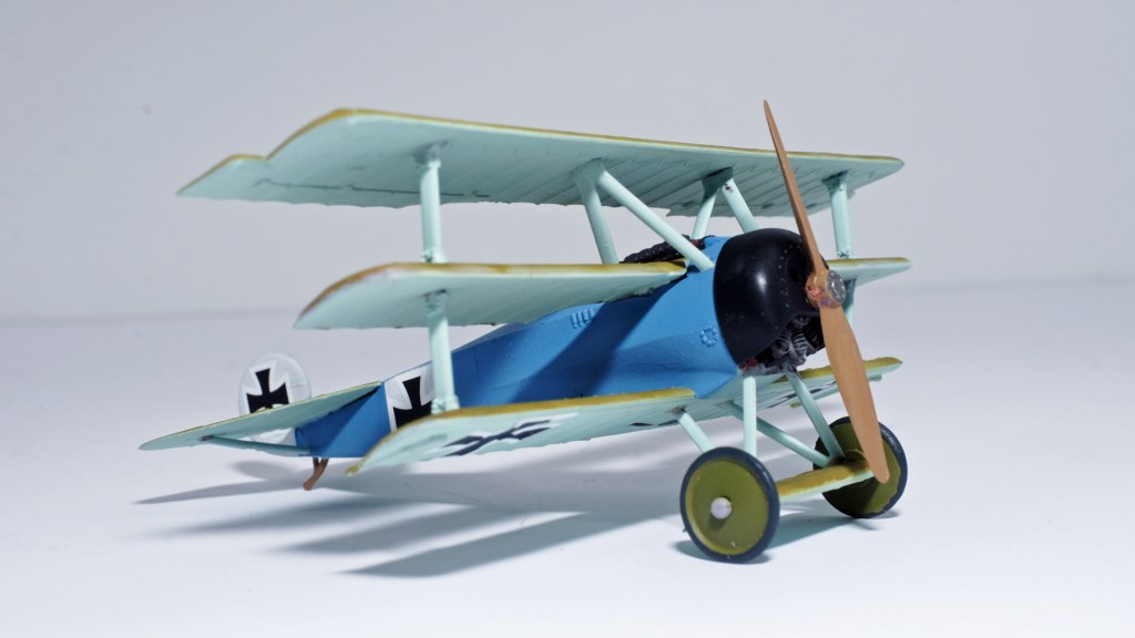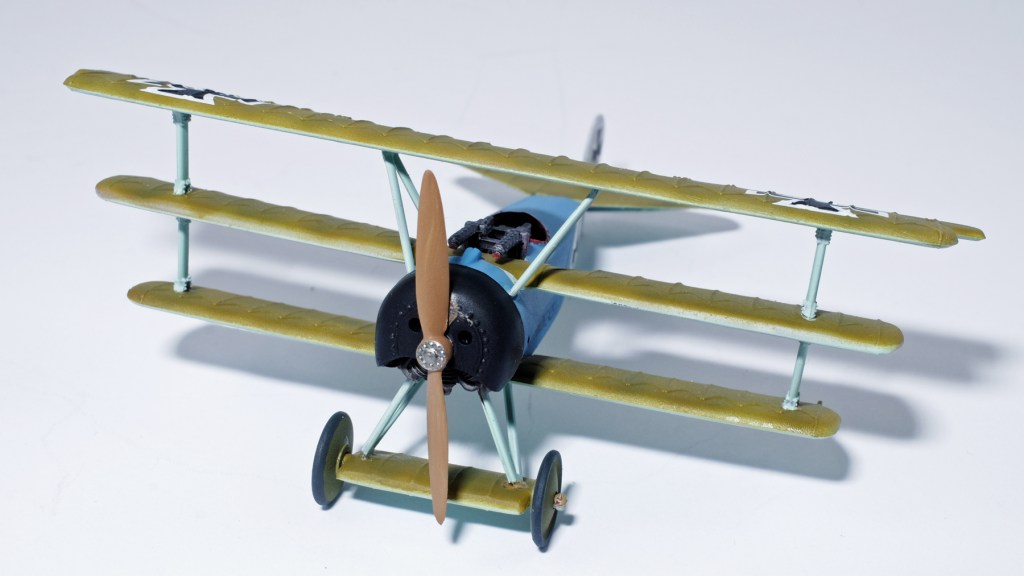 That’s the plate that I have based my Fokker triplane upon. The kits that come out of this iconic aircraft all seem to assign it to Manfred v. Richthofen and mould it in red plastic. An understandable choice, as he was possibly the most famous ace of the war – but a bit boring and predictable for a scale model collection. I already have an Albatros fighter in his colours, so I cast about for a different one.