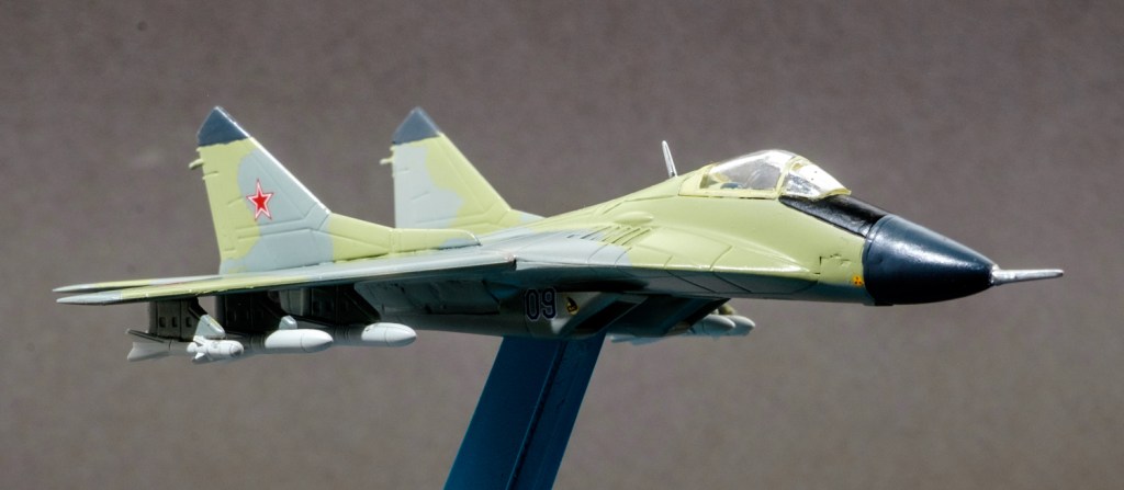 The Mig -29 appears in a lot of photos and artwork – and on videos of air shows and various combats. It always looks impressive – and massive. But building this model after completing the Sukhoi Su-22 has shown me how small it actually is.