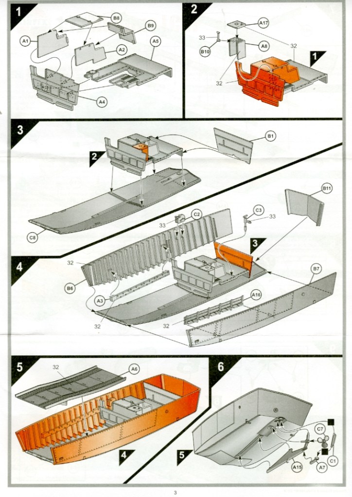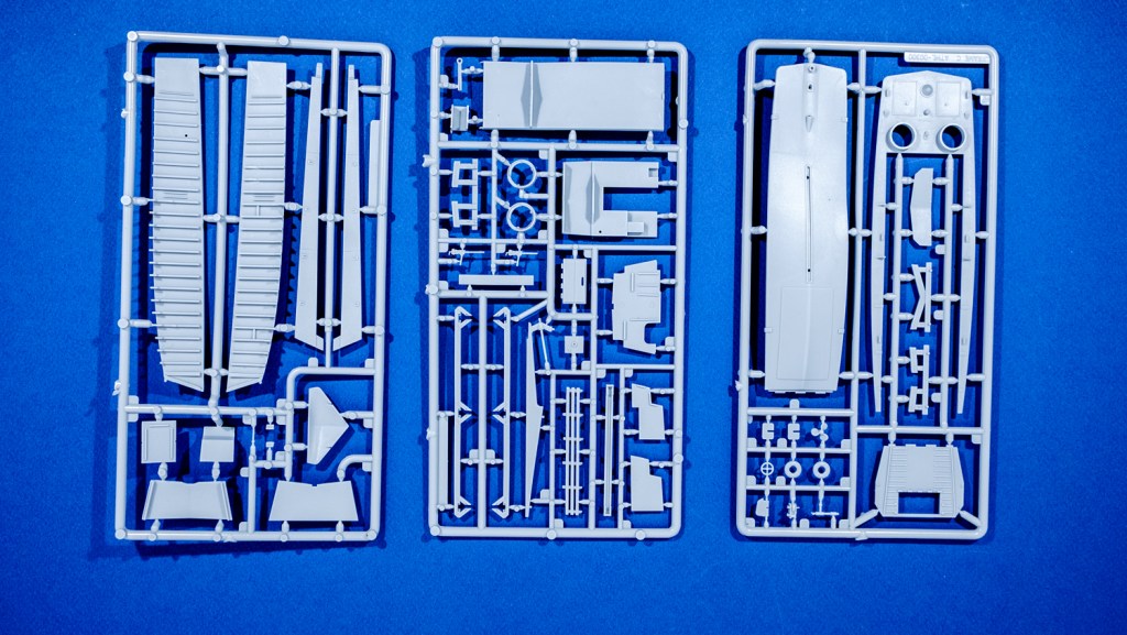 There are three grey sprue trees and they look pretty good – though complex. It is sort of an upturned box structure plopped into the water, with an engine and crew positions at the back and a front that drops into a ramp. You’ve seen them dozens of times in war movies.