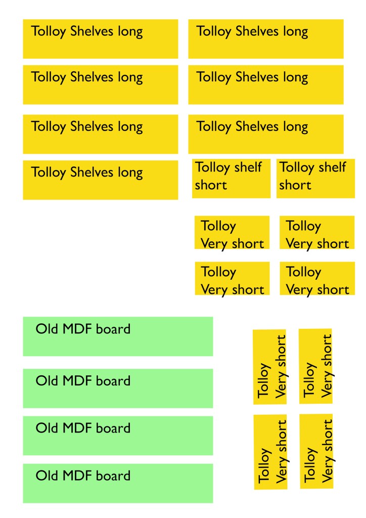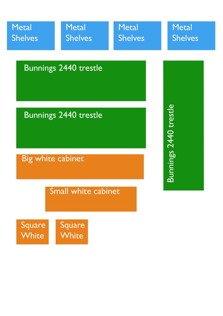 So I have taken to measuring the space to be filled accurately, drawing a plan view of the open area and then making a handful of cardboard rectangles with the dimensions of furniture, trestles, cabinets, etc. these can be shuffled in the imaginary room until they fit.