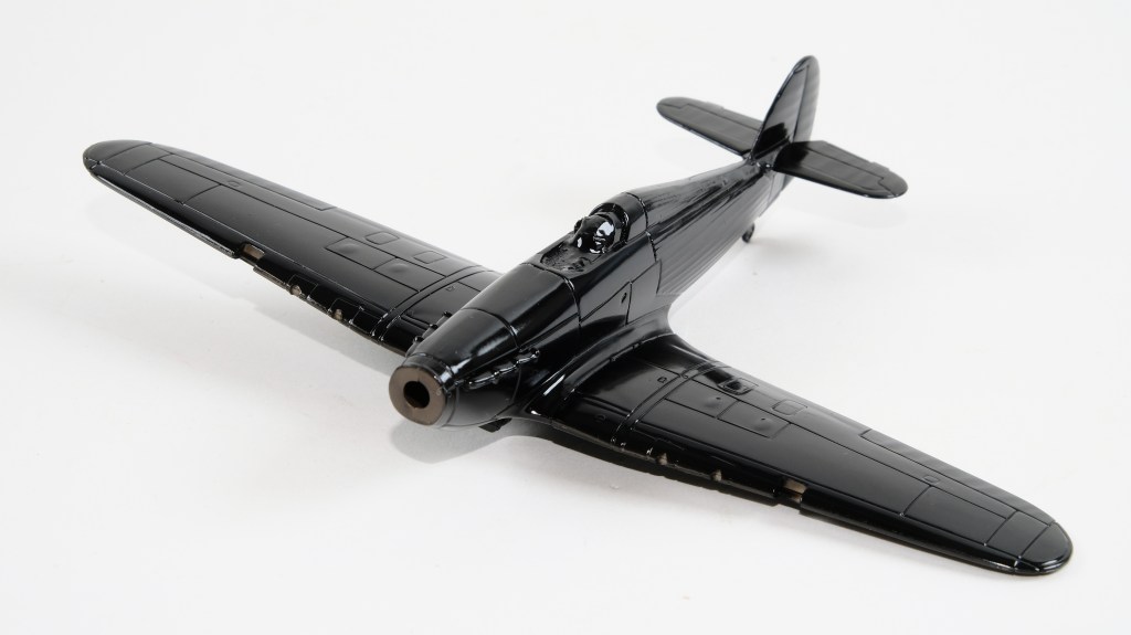 The basic structure of the Hurricane went together on Saturday afternoon. The undercoat and then the black sprayed on Sunday. The clear gloss was Monday.