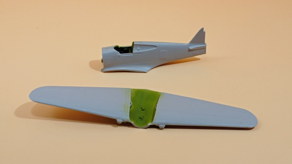 Not to be sneezed at, even with Spring bring hay fever. The minute shaving and sanding of the wing roots has resulted in no gaps. The tail likewise, though this has been pinned for strength.