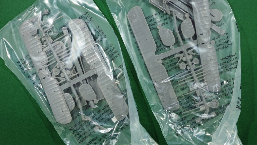 The Vintage Classic Bristols are somewhat corked and vinegary by now. There are massive ejector pin marks on the top of the wings and the pin registration of the fuselage halves is appalling. The pilots are half-bodies. The wheels are mis-moulded. But the propellers are nice. And the instructions are in English.