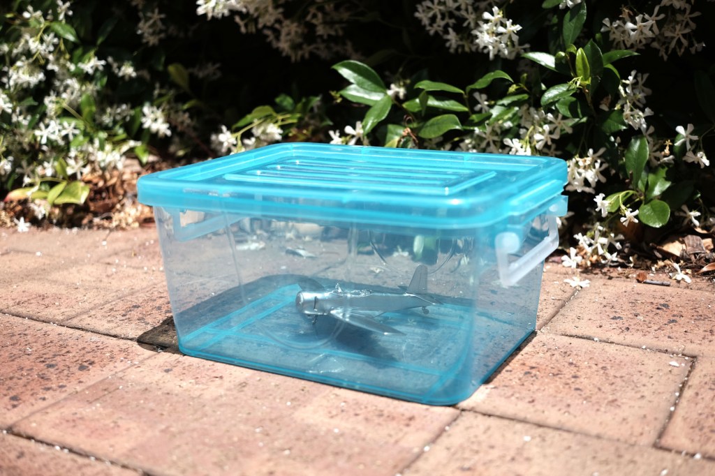 Here is where the Baking Box comes in. During Spring and Summer months you can pop the just-sprayed aircraft into a plastic box and out into the sunshine for a brief period – it lets the paint set hard very quickly while keeping dust or bird do off it.