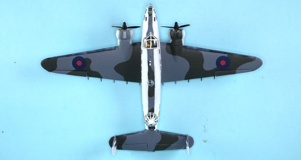 I followed profile drawings from Vincent’s book for this as well as period photographs. The continuation of the Atlantic White up the side of the fuselage to meet a narrow strip of camouflage is real – both drawings and photos show it. Does look a little like a reversed skunk, but I guess they were more concerned with sightings from the sea than the air.