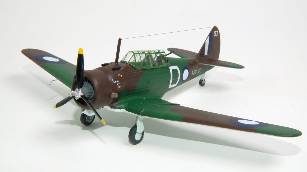 And a final tip o’ the Hatlo hat to the DK Decals company from the Czech Republic. Their specialist packet of WWII RAAF fighters decals is proving perfect for the collection. I’ve snipped off the Buffalo, Hurricane, Boomerang, and Wirraway and there are still four more types that can be decorated with the sheet. It was a little pricey to start with but has proved good value by now.