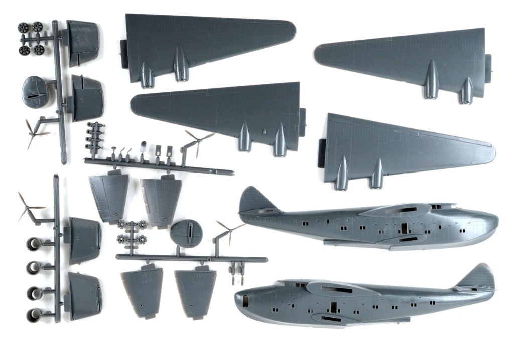 The entire kit is about he size of a 1/72 twin-engine bomber but with four radial engines. Imposing size shrunk to fit a standard shelf.