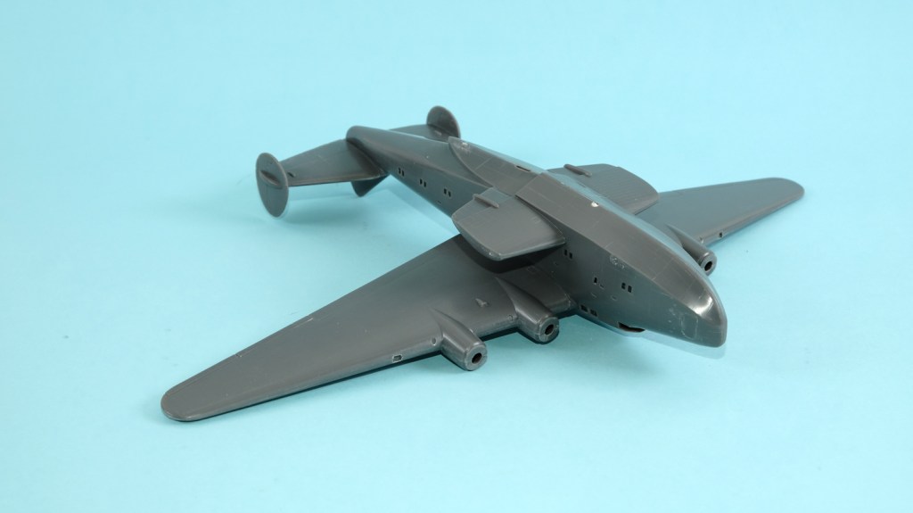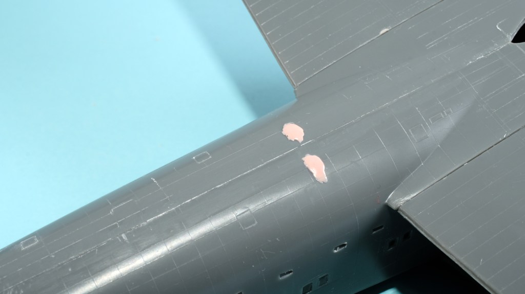 Note that there are very many small rectangular portholes all along both sides of the hull, but Airfix have done a good job of moulding the clear windows for them – once placed and fixed with thin cement they are nearly all flush with the external convexity. Only two sink points.